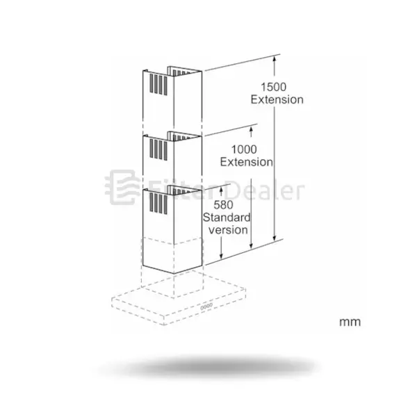 Die Gesamtgerätehöhe kann um max. 420 mm verlängert werden