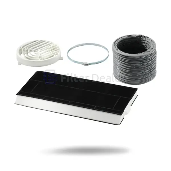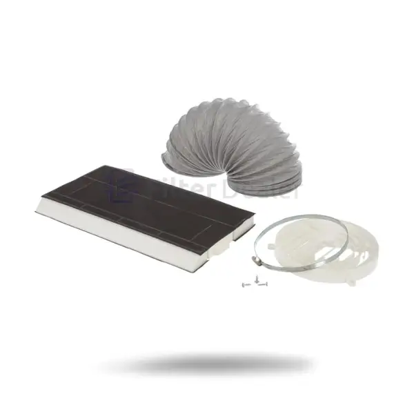 Enthält: einen Aktivkohlefilter, ein Lüftungsgitter, einen flexiblen Schlauch und eine Schlauchklemme.